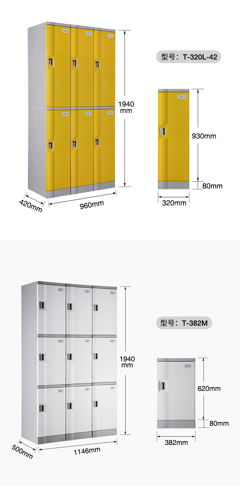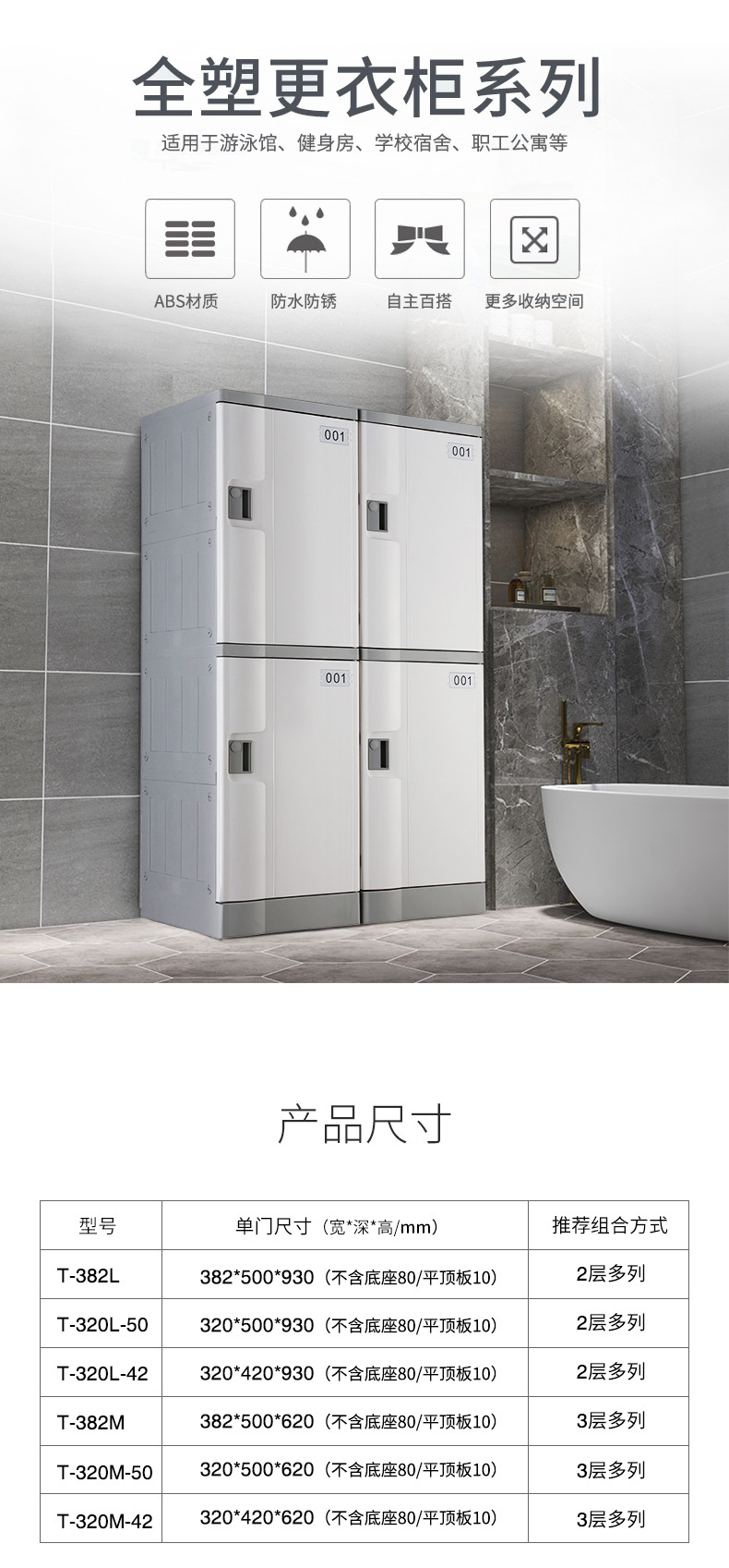 塑料更衣柜标配,拉手,标号牌,可根据场地多门灵活组合。更多规格请咨询客服。