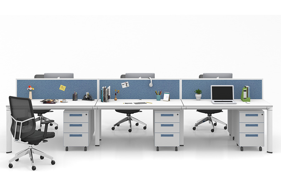 开放式办公桌采用E1级三聚氰胺板材,经过热压压上去的三聚氰胺面可防刮,防污,防水;钢架结构安装,钢管厚度1.2MM热轧钢,全静电喷涂,使用寿命十年以上。