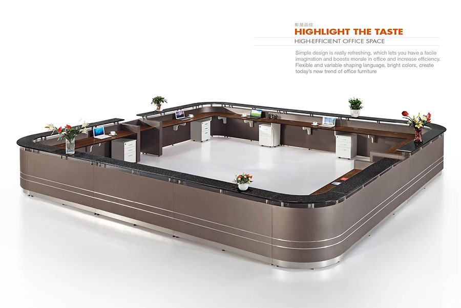 精致的现代设计,加厚密度板稳固耐用,承重力强,桌角空间大,方便舒适,作为前台的首选。