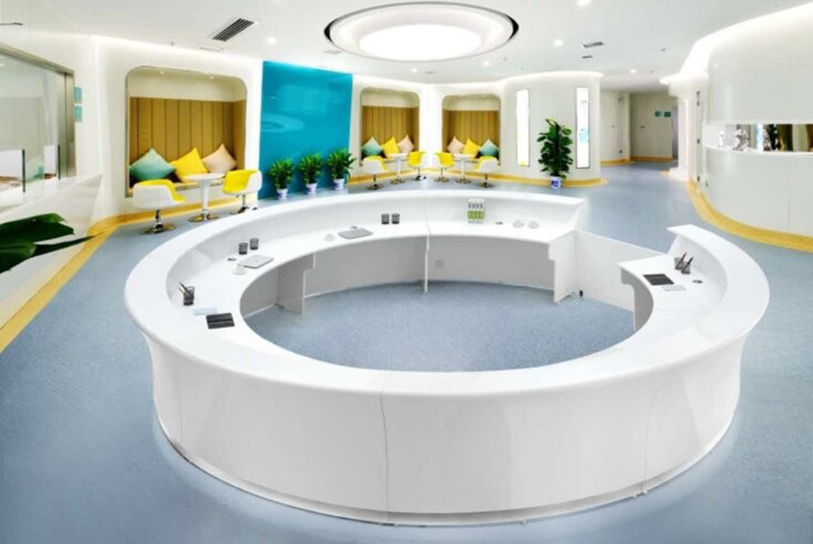 精致的现代设计,加厚密度板稳固耐用,承重力强,桌角空间大,方便舒适,作为前台的首选。