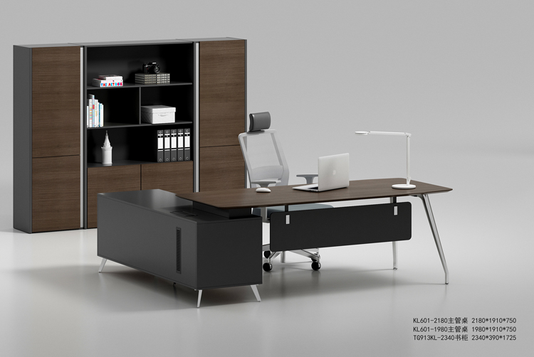 现代简约经理主管桌,忙碌的工作中难免会遇到不顺心的事,这时候换种姿势,换种心情,会有意想不到的收获。 班台配套侧柜,可放置皮包等大件物品,让您的办公室井井有条。工匠造美物,从简单中造出美。